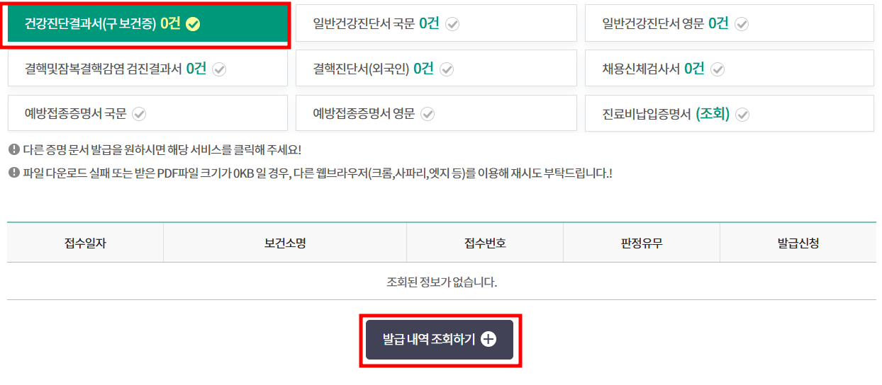 - 비정상 판정 시: 검사 결과가 비정상일 경우, 온라인 발급이 불가능하며 해당 보건소를 방문해야 합니다.